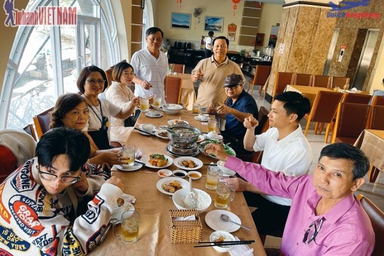 - Ăn trưa cơm phần 4-5 món ghép bàn.
