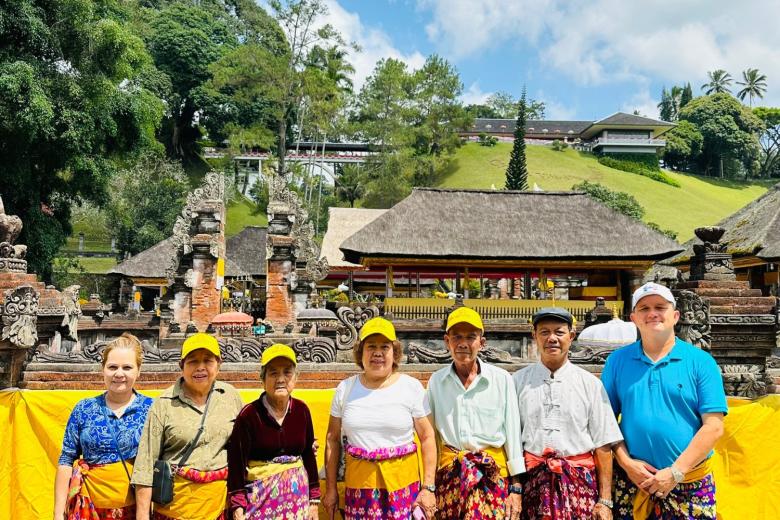 Trưa: Đoàn hạ cánh tại Bali, tiến hành thủ tục nhập cảnh. Xe và hướng dẫn viên (HDV) đón đoàn để bắt đầu hành trình tham quan: