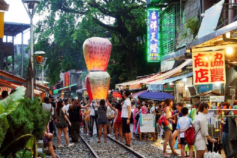 Làng cổ Thập Phần (十分老街) - Shifen: Tương truyền rằng, những ai đến đây thả đèn trời và cầu nguyện thì ước nguyện sẽ thành hiện thực. Trải nghiệm thả đèn lồng (công ty tặng 4 khách/đèn lồng) tại đây.