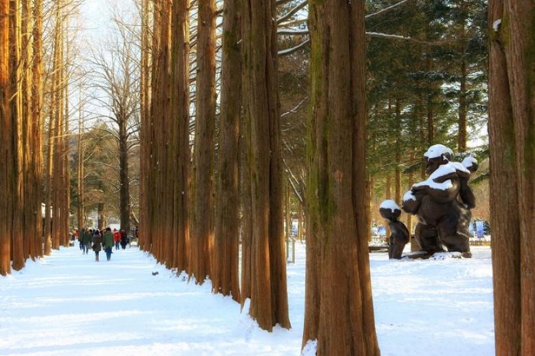 Chiều: Đoàn tham quan Đảo Nami (Nami Island): Địa điểm quay bộ phim “BẢN TÌNH CA MÙA ĐÔNG”, nổi tiếng với cảnh sắc lãng mạn, nơi du khách tự do chụp ảnh và ngắm cảnh.
