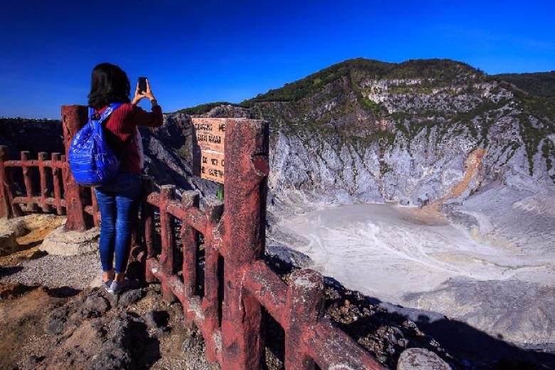 Kawah Putih, còn được biết đến như là miệng núi trắng, được tạo nên sau vụ phun trào của núi Patuha. Làn cát trắng mịn và nước trong veo ở đây, sẽ khiến bạn cảm thấy như vừa bước vào một mảnh đất thần tiên. Màu sắc của nước ở đây sẽ thay đổi tùy theo điều kiện thời tiết trong khu vực với mùi nước giàu lưu huỳnh cay nồng. Mặc dù không thể bơi ở dưới nước của Kawah Putih, đây vẫn là một địa điểm du lịch Bandung đáng để dành thời gian tham quan.