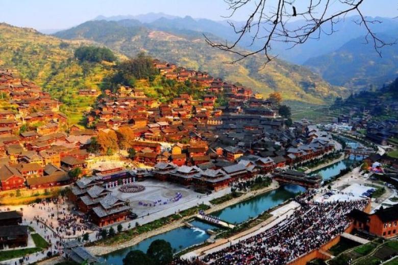 Cựu Châu Cổ TrấnTây Giang Thiên Hộ Miêu Trại là một trong những làng cổ lớn nhất và được mệnh danh là "vùng đất cổ tích" của dân tộc Miêu tại Quý Châu. Ngôi làng hấp dẫn du khách với không gian kiến trúc độc đáo, gồm những ngôi nhà sàn ngói đen truyền thống, được xây dựng trên sườn núi tạo nên khung cảnh vừa hùng vĩ, vừa thơ mộng.