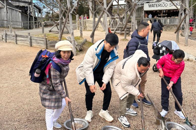 Thăm quan trung tâm thương mại Victoria Market Thị trấn Ballarat tìm hiểu về nơi đã khám phá ra mỏ vàng năm 1851 qua sự tái hiện cảnh đào vàng trong thế kỷ 19. Quý khách thử vận may, đãi vàng tại dòng suối, nếu may mắn có thể tìm được vàng. Sau đó quý khách được hướng dẫn đưa vào thăm quan mỏ vàng và được nghe giới thiệu cách thức khai thác vàng từ thế kỷ 19.