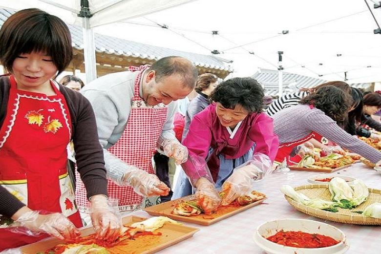• Tham gia làm kim chi và diện trang phục truyền thống Hàn quốc - Hanbok.
