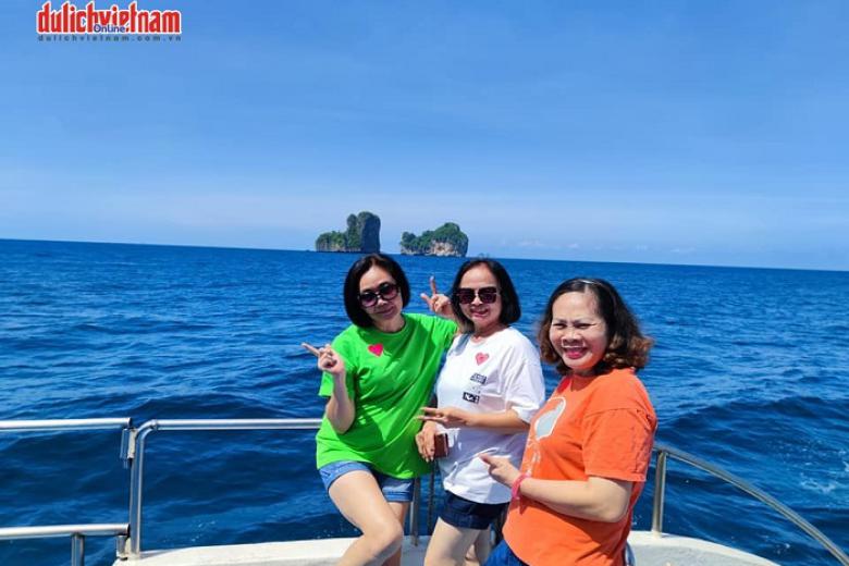 Sau đó, tàu đưa đoàn trở về cảng tham quan và chụp ảnh tại Prom Thep Cape View Point: Điểm cực Nam của Phuket, nổi tiếng với cảnh hoàng hôn tuyệt đẹp.