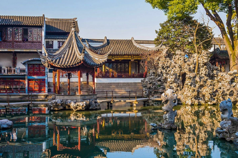 Được xây dựng vào thế kỷ 14, dưới triều đại nhà Nguyên, khu vườn mang tên Sư Tử Lâm vì trong vườn có nhiều đá được tạo hình giống như sư tử. Đây là một biểu tượng của nghệ thuật vườn cảnh Trung Hoa với những thiết kế tinh tế, bao gồm hồ nước, cầu đá, và những hòn đá nghệ thuật đầy ấn tượng.